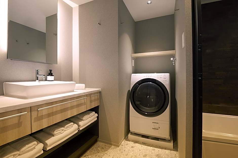 The family room includes a private bathroom, well-fitted with a bath, a shower, a bidet, a hairdryer and slippers. Guests can make meals in the kitchen that is equipped with a stovetop, a refrigerator, kitchenware and a microwave. The family room features tatami floors, a seating area with a flat-screen TV with streaming services, air conditioning, a washing machine, as well as a safe deposit box. The unit offers 4 futons.